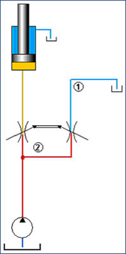 我們可以通過以下這種連接方式,當泵在低速運行期間的多余流量會經(jīng)過閥流回油箱。力士樂將為用戶提供以下以下節(jié)流控制:即在控制方式的中位開啟型設計: